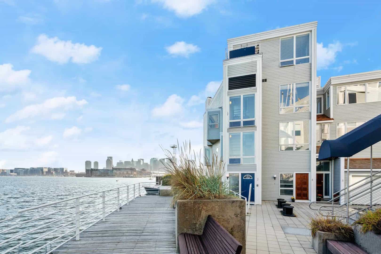Constellation Wharf was completed in 1987 and remains one of the most visible and prominent residential developments along Boston’s Waterfront. Located in the historic Charlestown Navy Yard on Pier 7, Constellation Wharf consists of 64 large town homes with gray clapboard facades reminiscent of many traditional New England coastal communities. Townhomes at Constellation Wharf range from 3 beds with 1,850 sq/ft to 4 beds with 3,100 at the Wharf’s edge with Direct views down the Harbor and towards Waterfront. Many of the townhomes at Constellation Wharf have multiple decks overlooking the marina, Harbor & City.