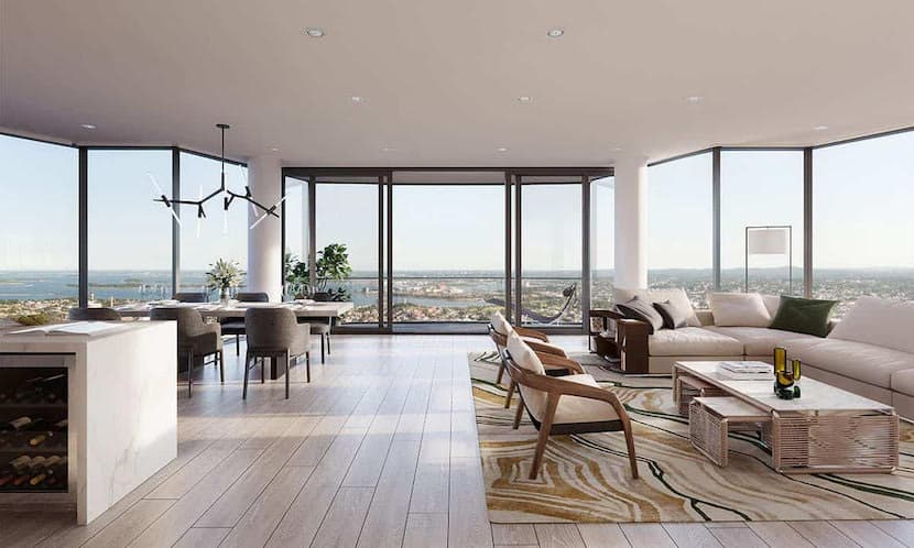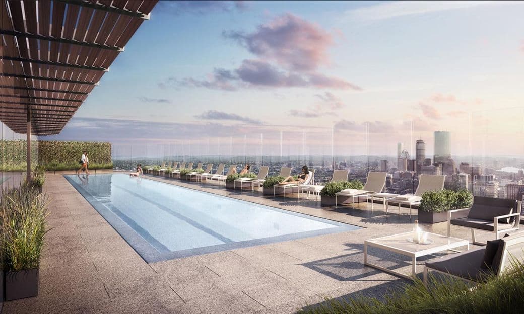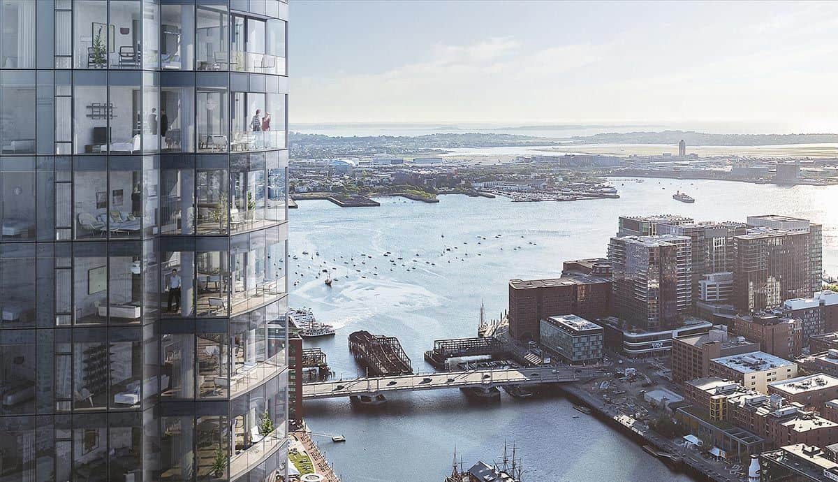 Rising high above South Station, The Ritz Carlton is one of Boston's most exciting new luxury developments. Hines Development plans to complete the Financial District's lates tower in 2025, which will have 166 condos located on the top portion of the building. The condos, which will have floor-to-ceiling windows, are certain to have some of the best views in Boston: stretching across Boston Harbor to the east and Downtown to the west. The amenity spaces will include lounges, dining spaces and terraces, gardens and activity lawns. Sales for the Ritz Carlton South Station begin in 2024.